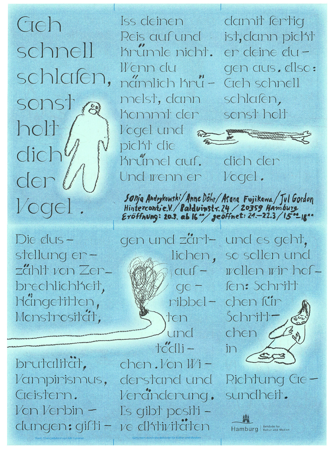 Geh schnell schlafen, sonst holt dich der Vogel // Sonja Andrykowski, Anne Döhr, Asana Fujikawa und Jul Gordon // 20.-22.03.2026